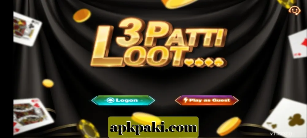 Open the 3 Patti Loot app on your phone. You will see the home screen with two options: Login and Play as Guest.